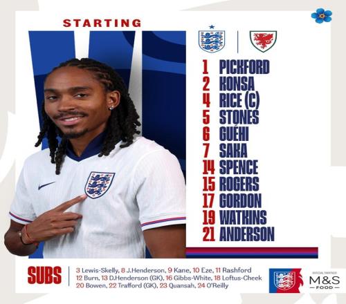 雷速体育10月10日宣 今日的国际友谊赛中,英格兰将对阵威尔士。赛前,英格兰国家队公布首发名单。