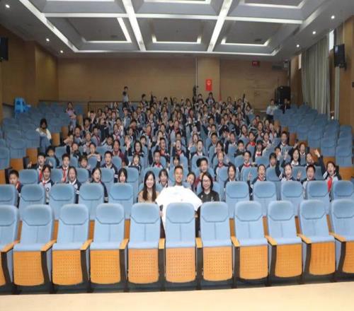 接着同学们来到报告厅,与陈老师开启了一次冠军课堂。华东师范大学第四附属中学党总支书记王萍深情寄语:“体育不仅是强身健体的手段,更是立德树人的载体。陈金洋老师带来的不仅是一堂课,更是一种信念的传递。”她勉励同学们以冠军为榜样,在奔跑中读懂坚持的意义,在汗水中感悟成长的力量,并强调学校始终坚持“健康第一”的教育理念,努力让每一个孩子都能在体育中找到属于自己的节奏与光芒。