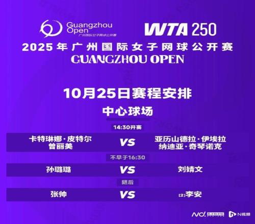 南都讯 记者汪雅云 10月24日,2025年广州国际女子网球公开赛结束了女单四分之一决赛的争夺,张帅和三位华裔球员孙璐璐、李安、刘婧文包揽四强。10月25日,本届广网将展开单双打半决赛的争夺。
