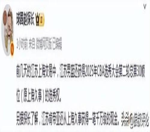 而外界关注的江苏第30号顺位,上海男篮最终以弃权告终。这也是外界调侃,这笔交易当中,上海男篮付出千万级别的转会费,选秀权只是附加的条款。